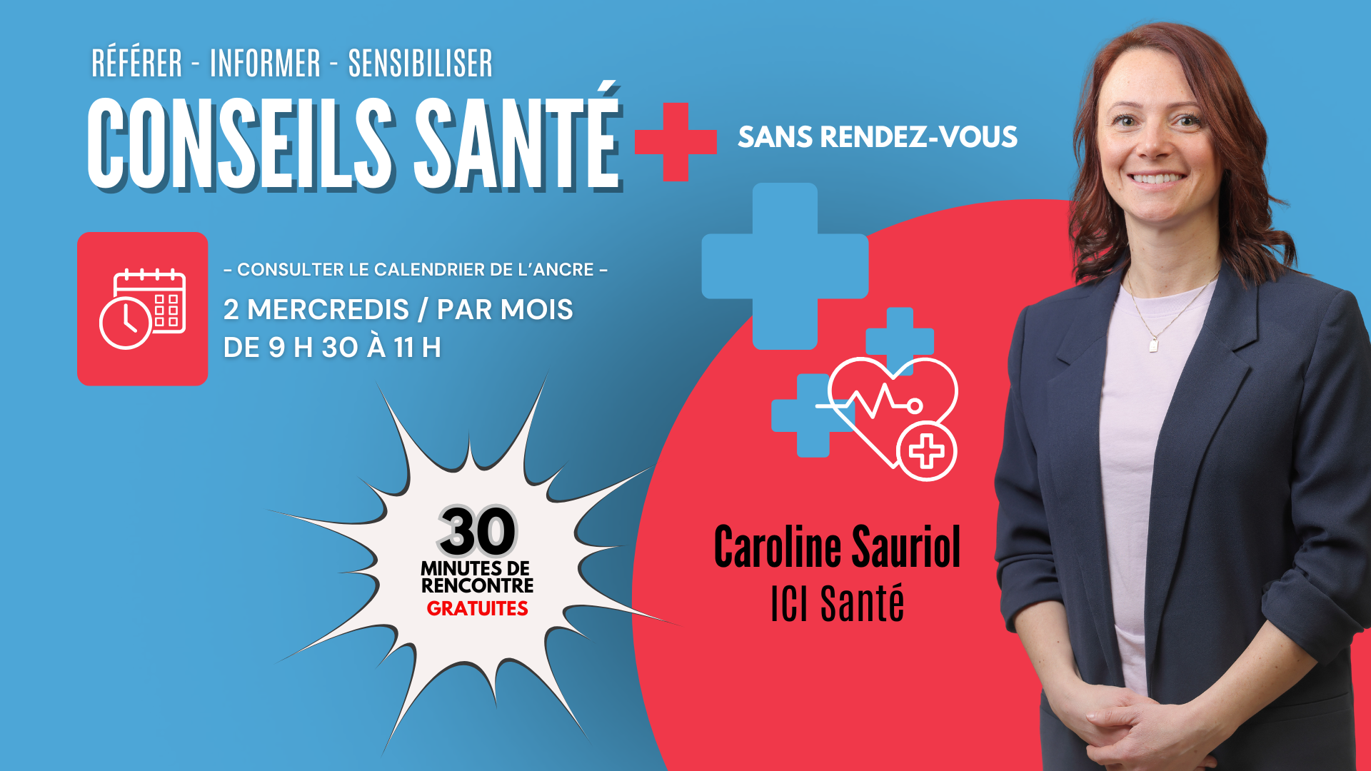 Pour plus d’informations sur le service Conseil Santé + : carolinesauriol@lancre.ca